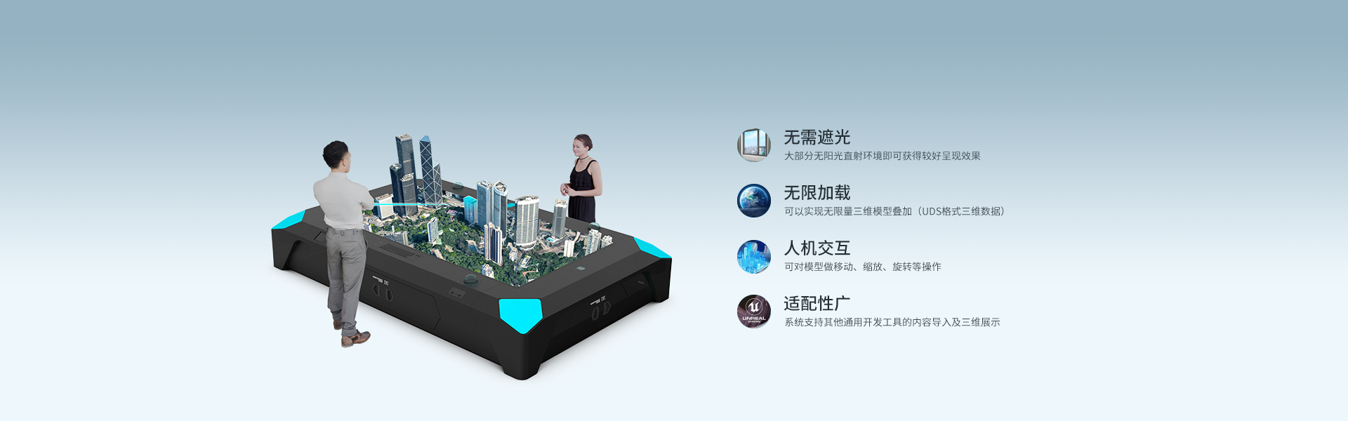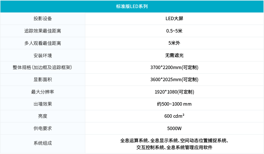 高分辨率、高清晰度及更先进的大屏幕显示系统。全息墙满足多人观看的需求,设备简单轻便,安装便捷,
